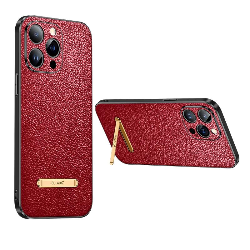 For iPhone 13 SULADA Invisible Bracket Leather Back Cover Phone Case(Red) (SULADA)