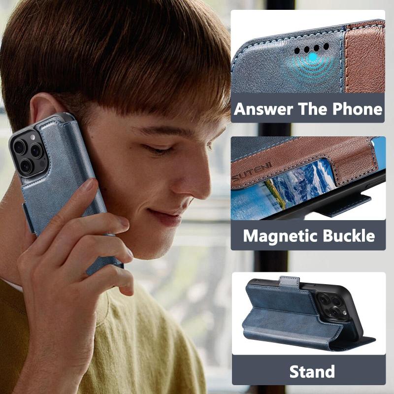 For iPhone 13 Suteni Q07 2-in-1 Multi-function Detachable Wallet MagSafe Phone Case(Blue) (Suteni)