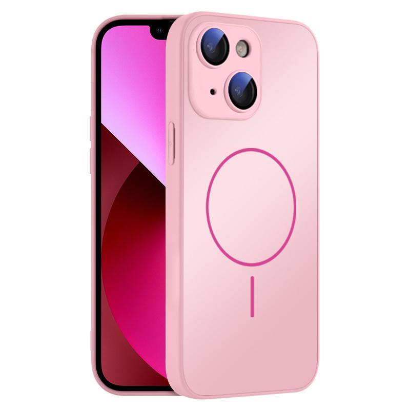 For iPhone 13 Thin Circle MagSafe Skin-feel AG Glass Phone Case(Pink)