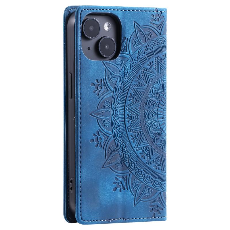 For iPhone 13 Totem Embossed Magnetic Leather Phone Case(Blue)