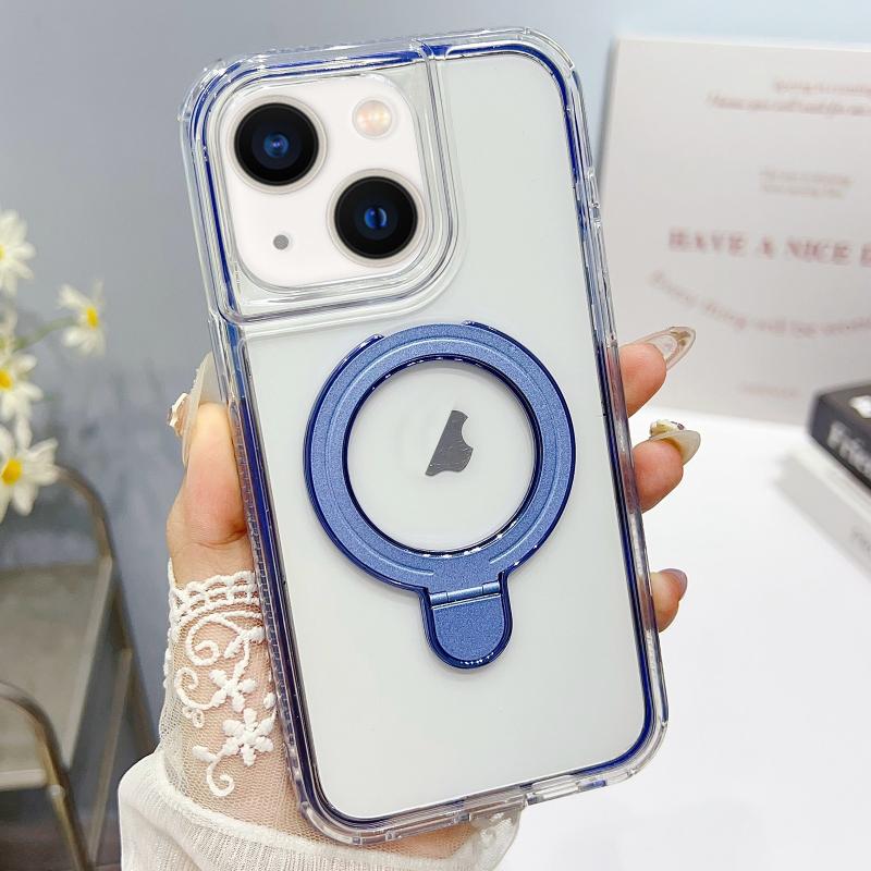 For iPhone 13 Translucent 3 in 1 Holder MagSafe Phone Case(Sierra Blue)