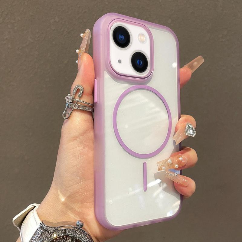 For iPhone 13 Translucent Armor MagSafe N52 Thin Circle Phone Case(Transparent Purple)