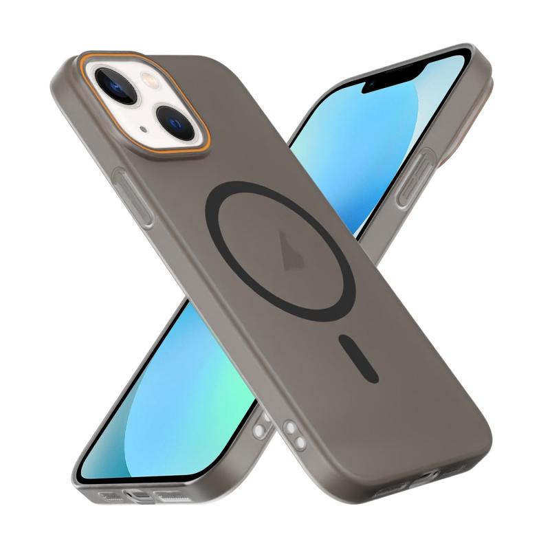 For iPhone 13 Translucent Frosted Skin PC MagSafe Phone Case(Black)