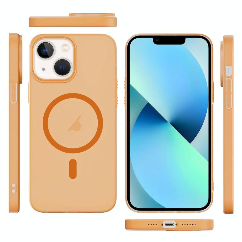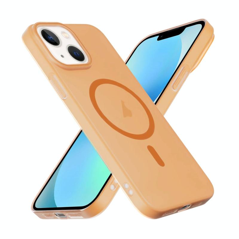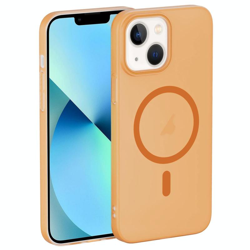 For iPhone 13 Translucent Frosted Skin PC MagSafe Phone Case(Orange)