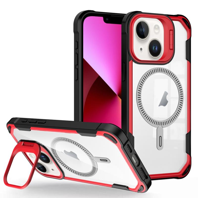 For iPhone 13 Transparent Acrylic MagSafe Lens Holder Phone Case(Red)
