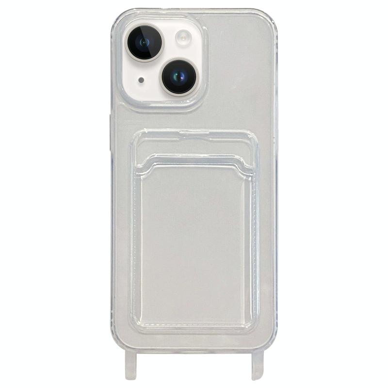 For iPhone 13 Transparent Card Slot TPU Phone Case with Lanyard Hole