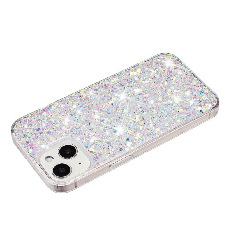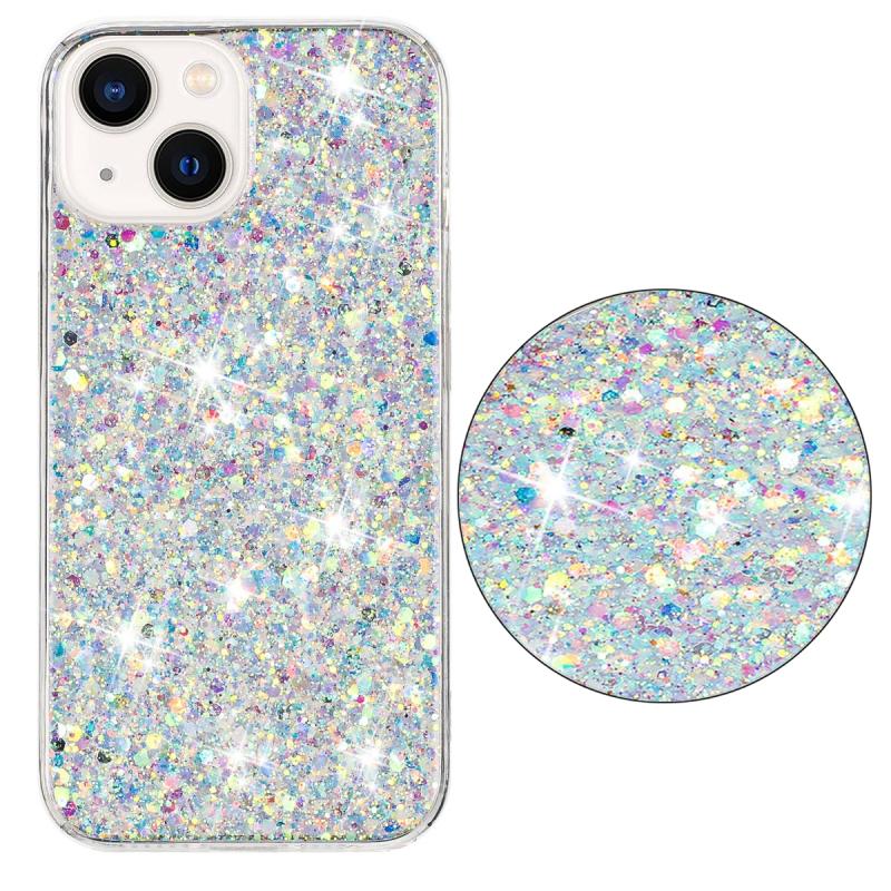 For iPhone 13 Transparent Frame Glitter Powder TPU Phone Case(White)