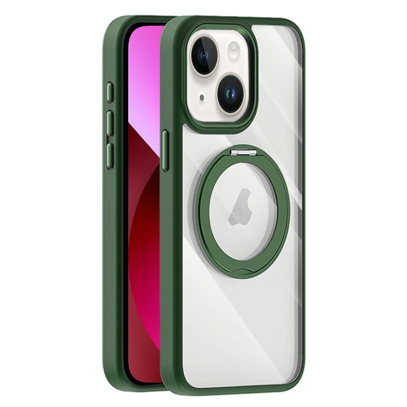 For iPhone 13 Transparent MagSafe Magnetic Holder Phone Case(Dark Green)