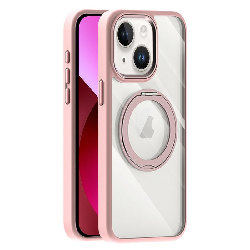 For iPhone 13 Transparent MagSafe Magnetic Holder Phone Case(Pink)