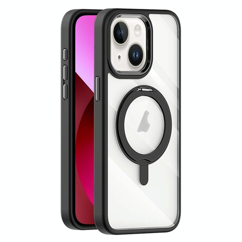 For iPhone 13 Transparent MagSafe Magnetic Rotating Holder Phone Case(Black)