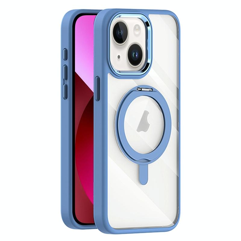 For iPhone 13 Transparent MagSafe Magnetic Rotating Holder Phone Case(Light Blue)