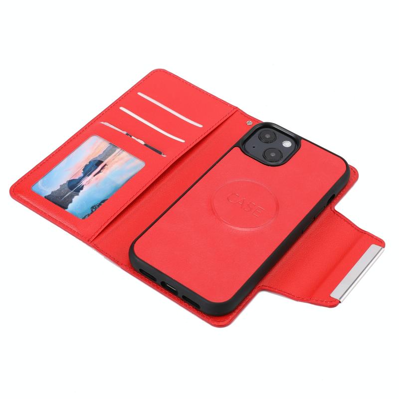 For iPhone 13 Ultra-thin Separable Magnetic Horizontal Flip Leather Case with Card Slot & Wallet(Red)
