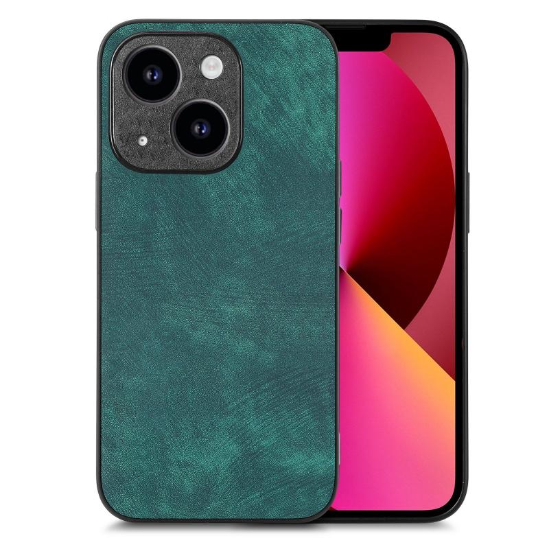 For iPhone 13 Vintage Leather PC Back Cover Phone Case(Green)