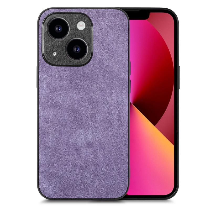 For iPhone 13 Vintage Leather PC Back Cover Phone Case(Purple)