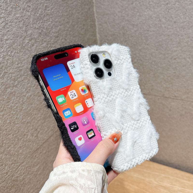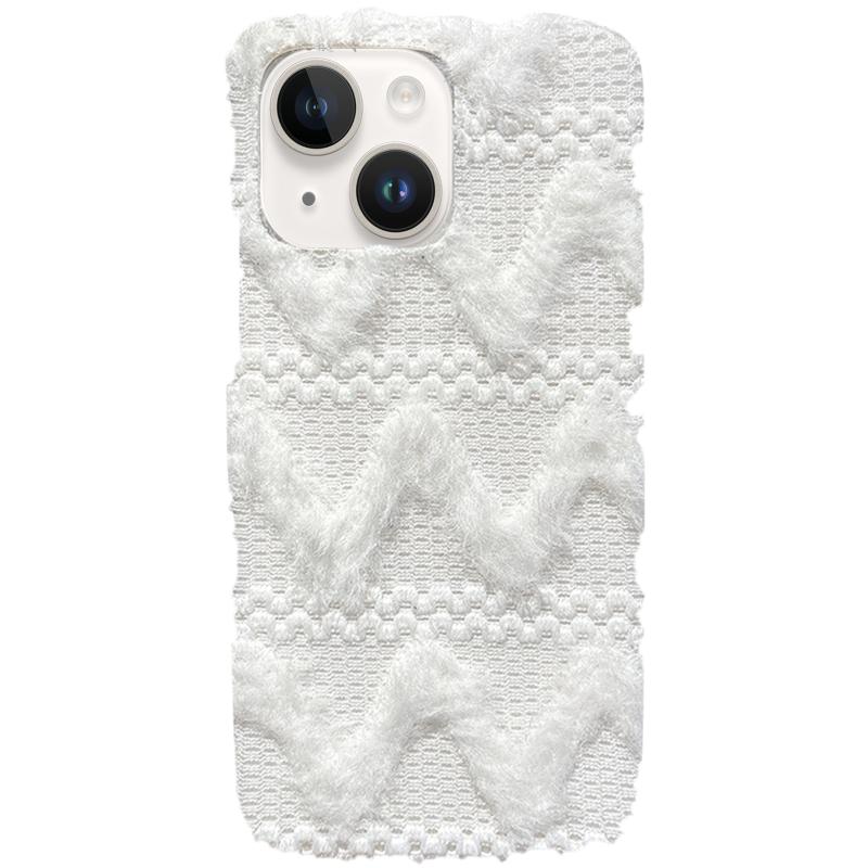 For iPhone 13 W-texture Plush TPU Phone Case(White)