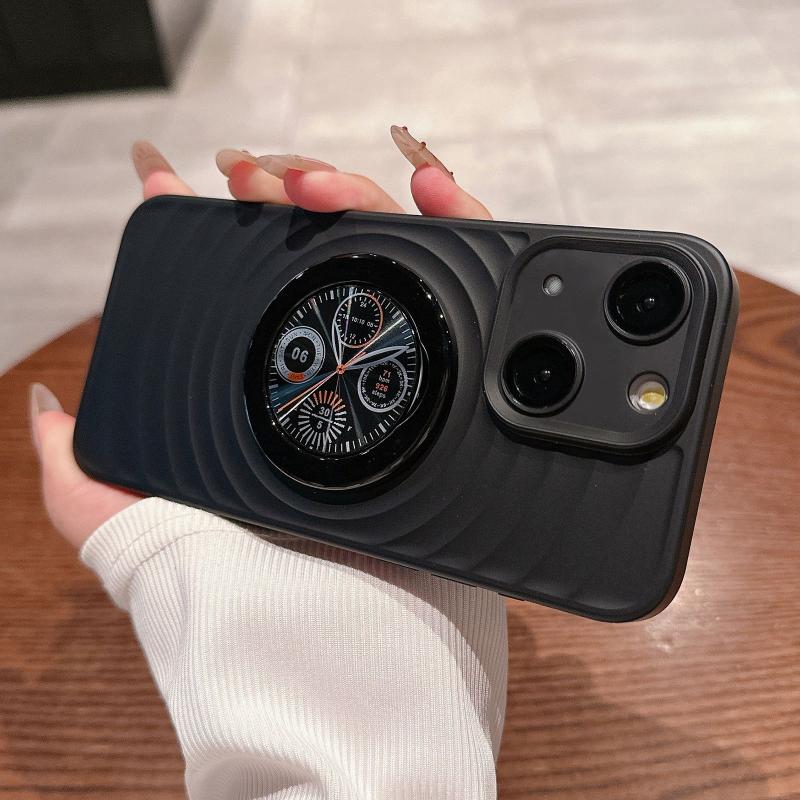 For iPhone 13 Wave Texture PC Shockproof Phone Case with Holder(Black)