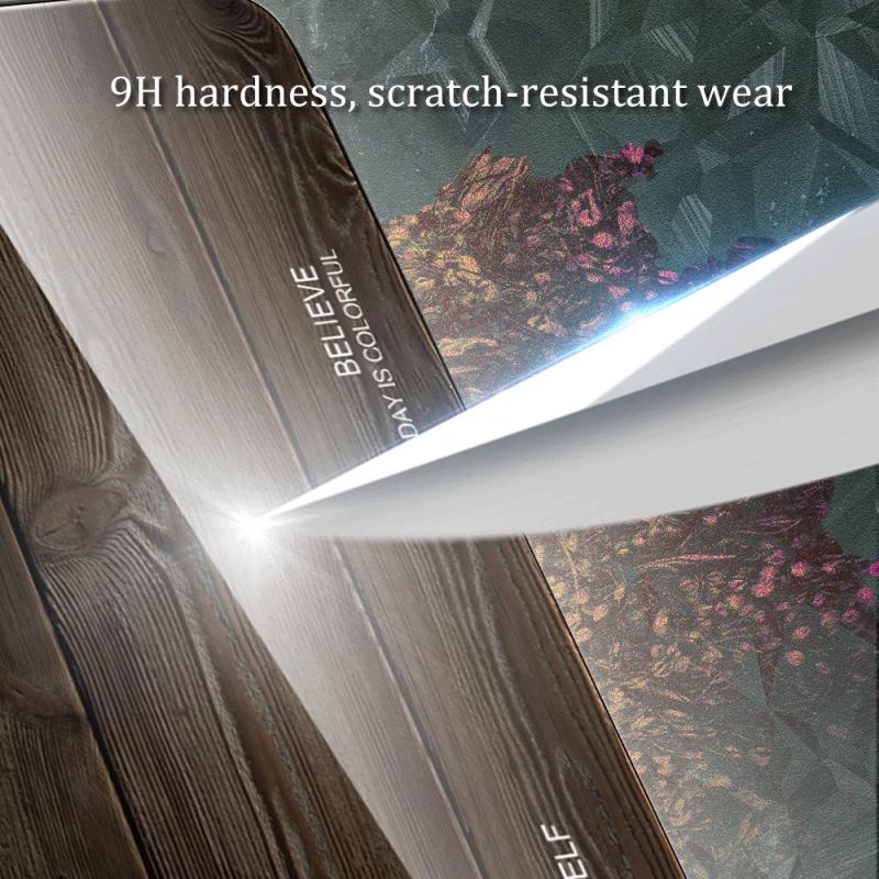 For iPhone 13 Wood Grain Glass Protective Case(Black)