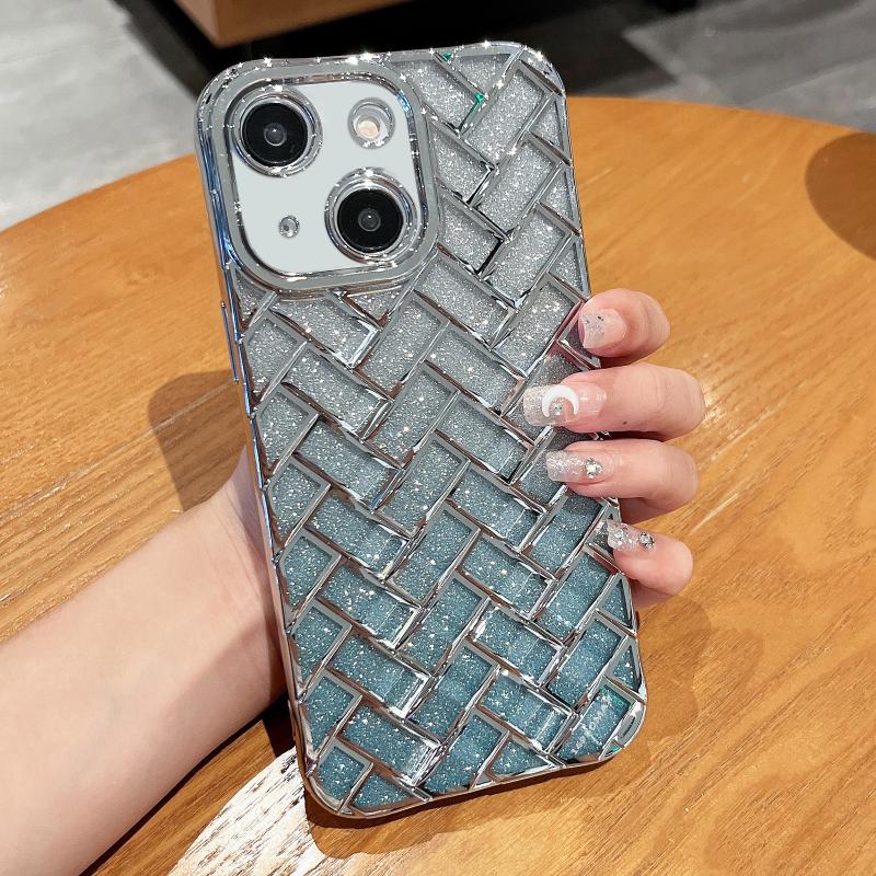 For iPhone 13 Woven Grid 3D Electroplating Laser Engraving Glitter Paper Phone Case(Silver)