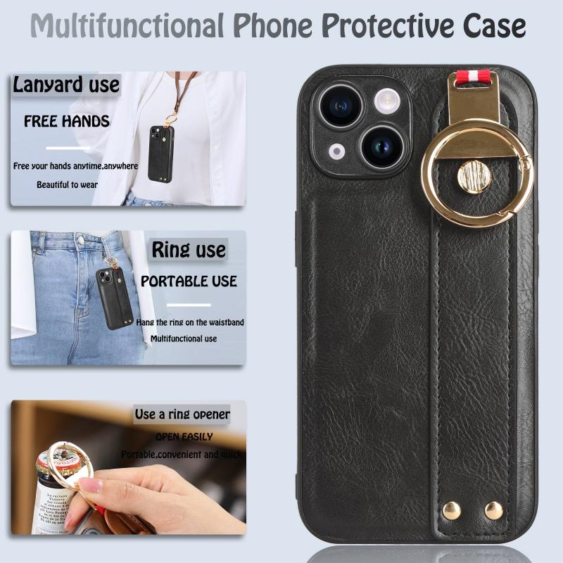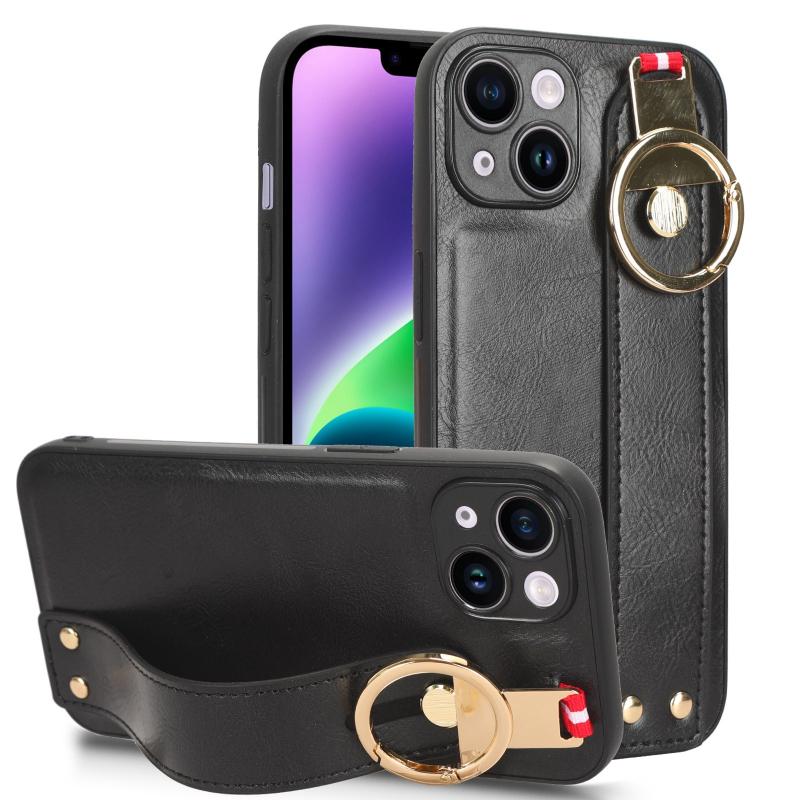 For iPhone 13 Wristband Leather Back Phone Case(Black)
