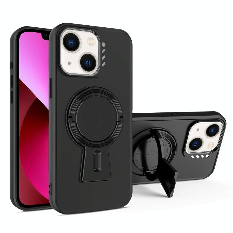 For iPhone 13 Y-shape Holder MagSafe Rugged Shockproof Phone Case(Black)