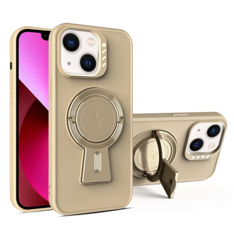 For iPhone 13 Y-shape Holder MagSafe Rugged Shockproof Phone Case(Desert Gold)
