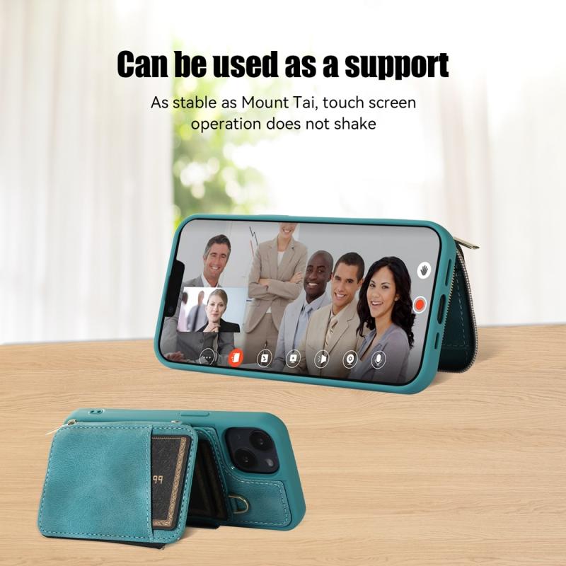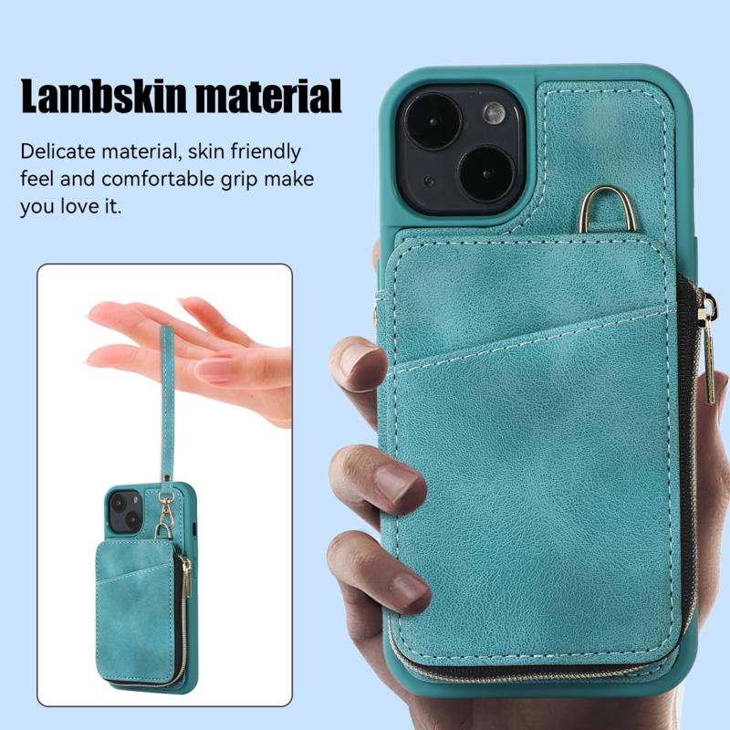 For iPhone 13 Zipper Card Bag Back Cover Phone Case(Turquoise)