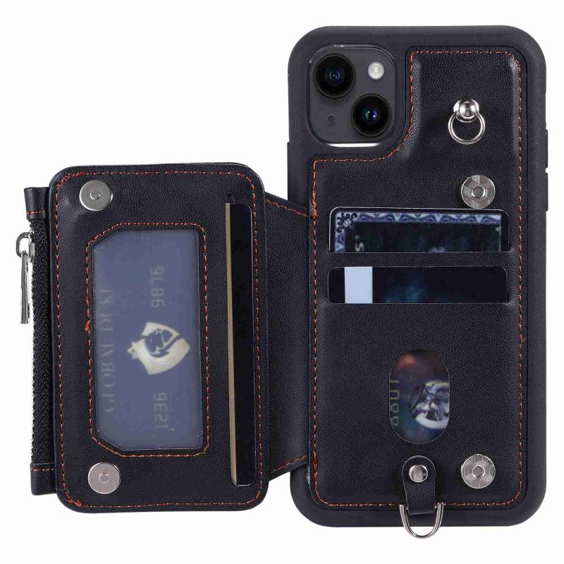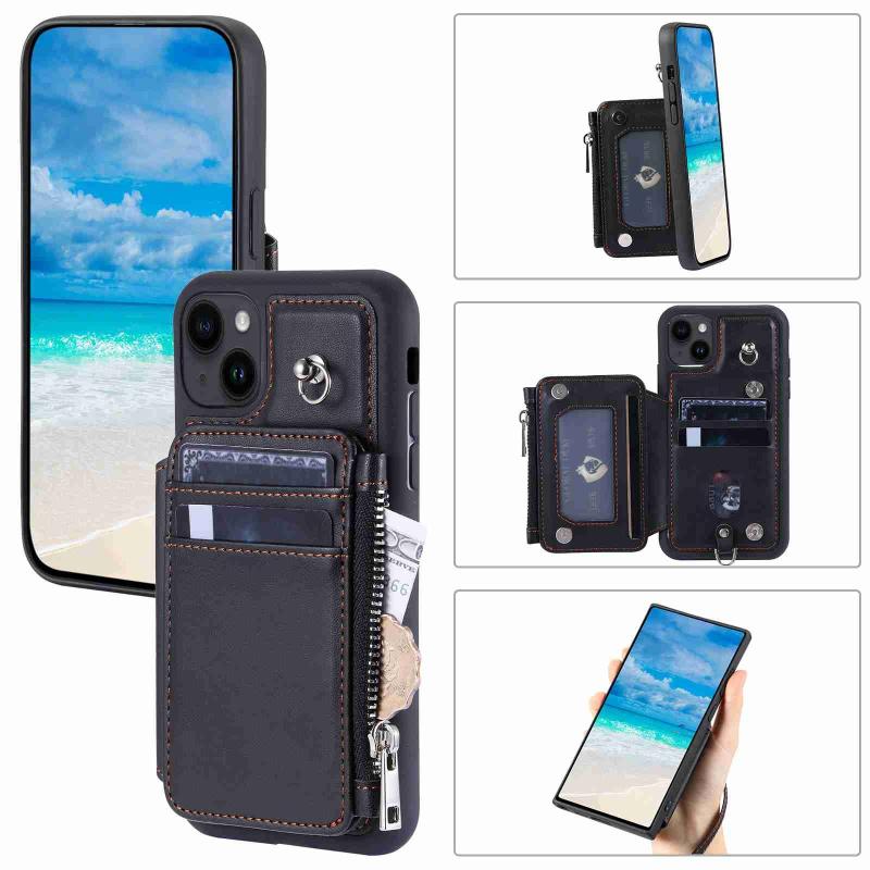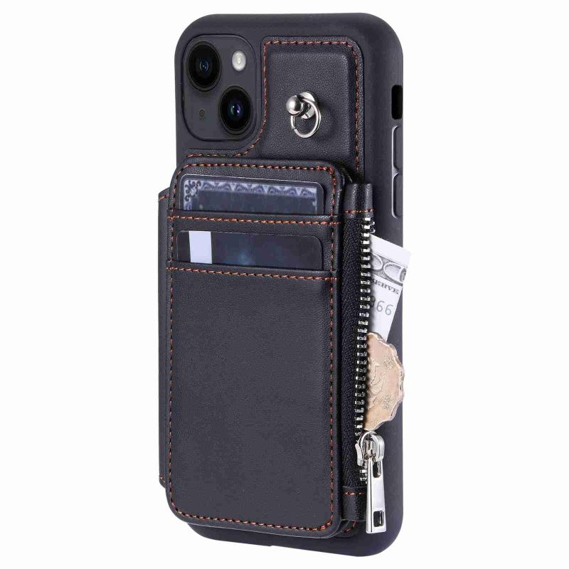 For iPhone 13 Zipper Card Slots RFID Phone Case(Black)