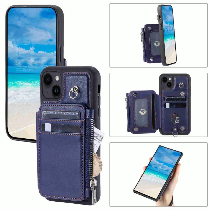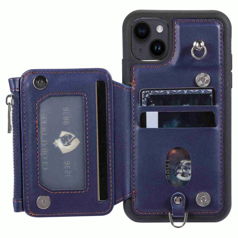 For iPhone 13 Zipper Card Slots RFID Phone Case(Blue)