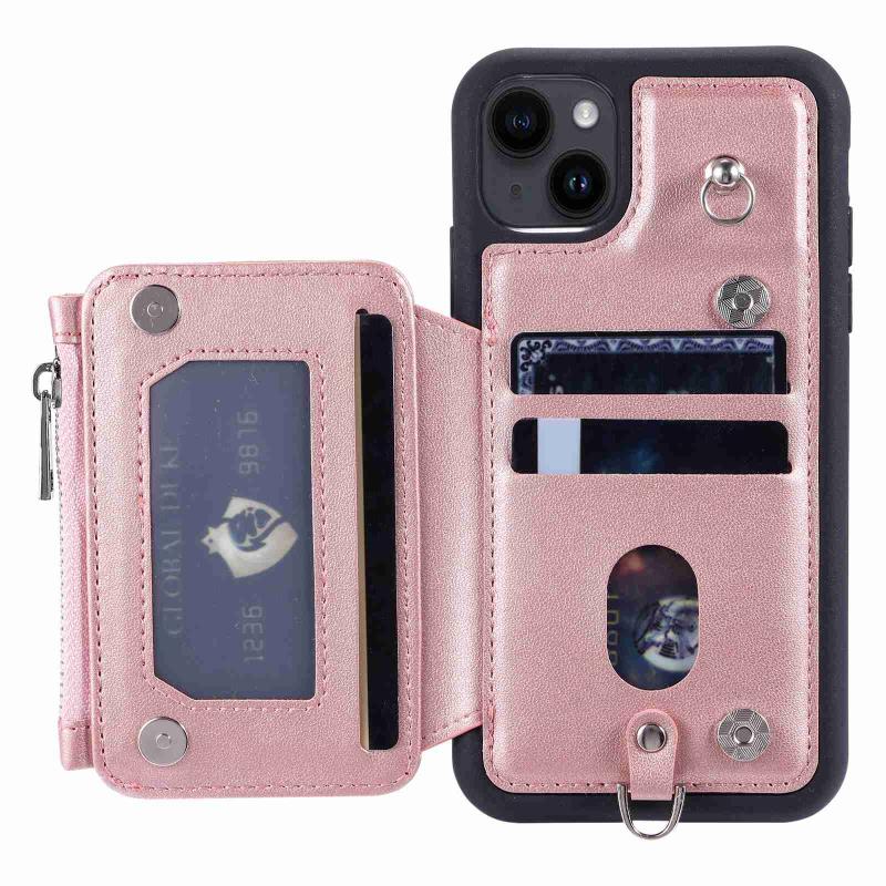 For iPhone 13 Zipper Card Slots RFID Phone Case(Rose Gold)