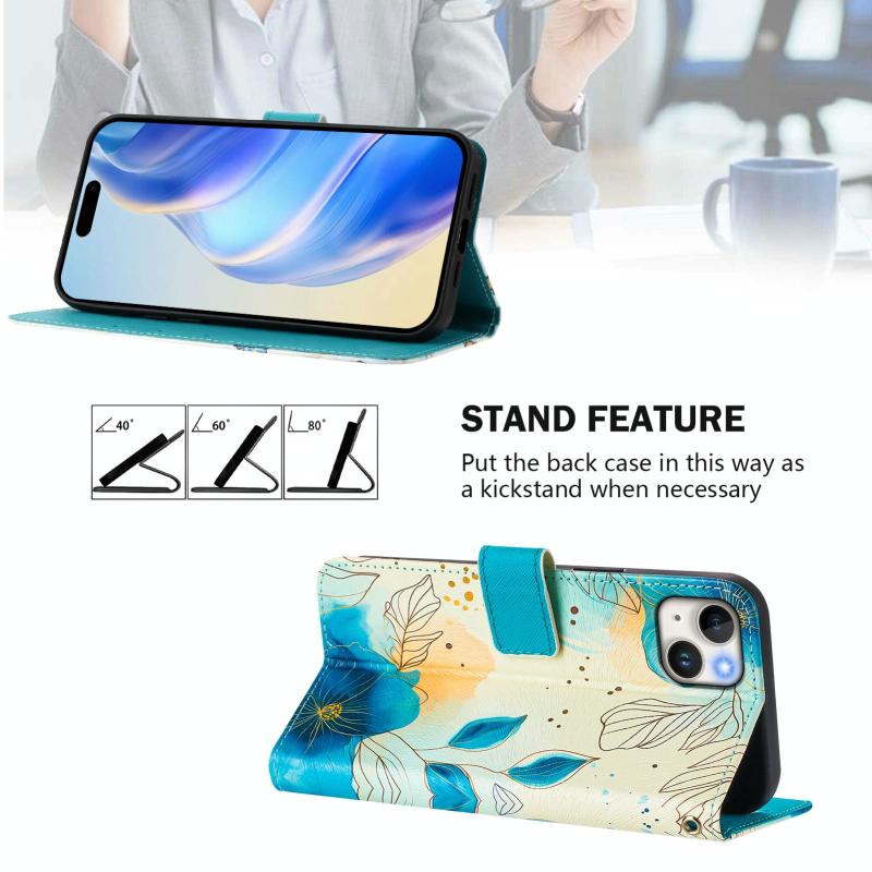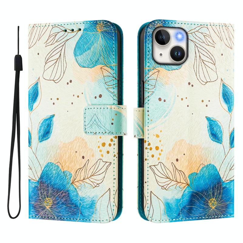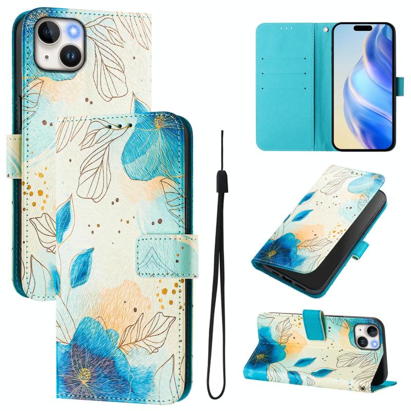 For iPhone 14 / 13 Art Colored Drawing Pattern Leather Phone Case(Flowering flowers)