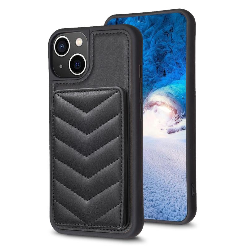 For iPhone 14 / 13 BF26 Wave Pattern Card Bag Holder Phone Case(Black)