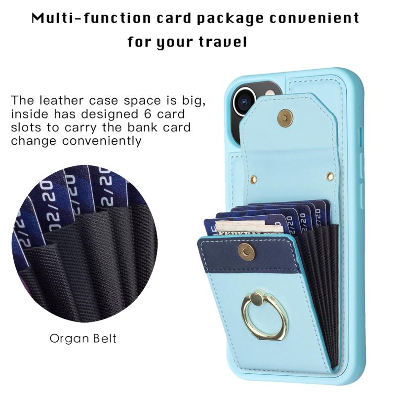 For iPhone 14 / 13 BF29 Organ Card Bag Ring Holder Phone Case(Blue)