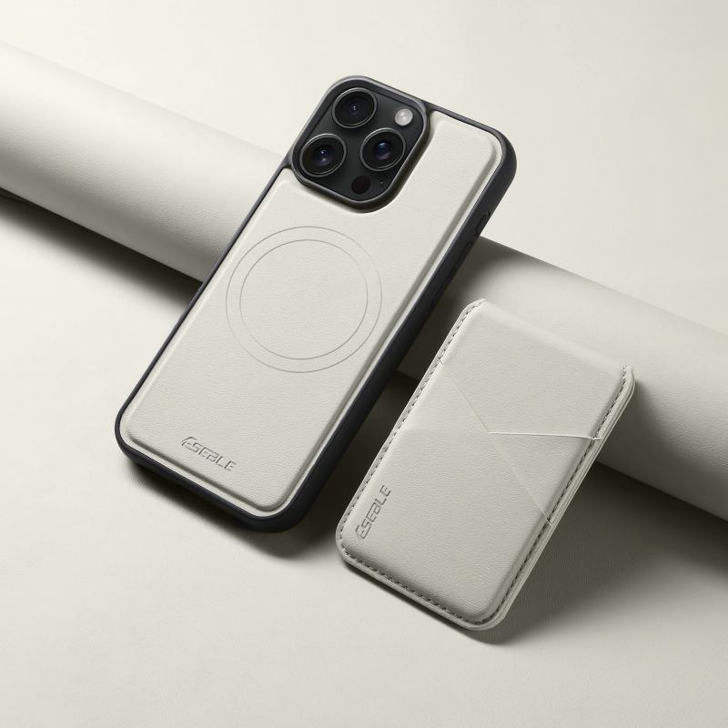 For iPhone 14 / 13 ESEBLE E3 Plain Texture Card Slots MagSafe RFID Leather Case(Ivory) (ESEBLE)