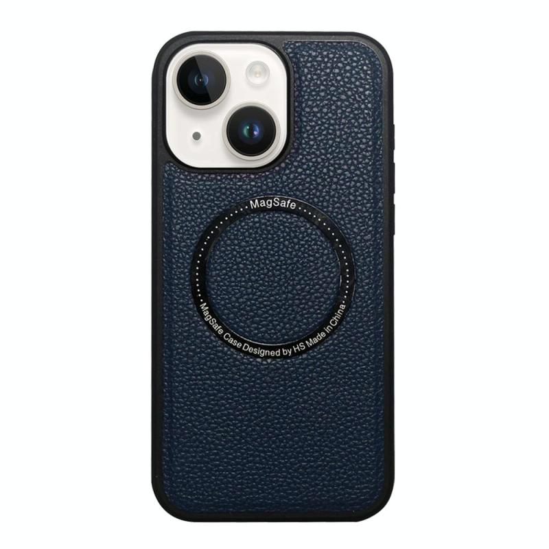 For iPhone 14 / 13 Litchi Texture PU MagSafe Back Cover Phone Case(Blue)