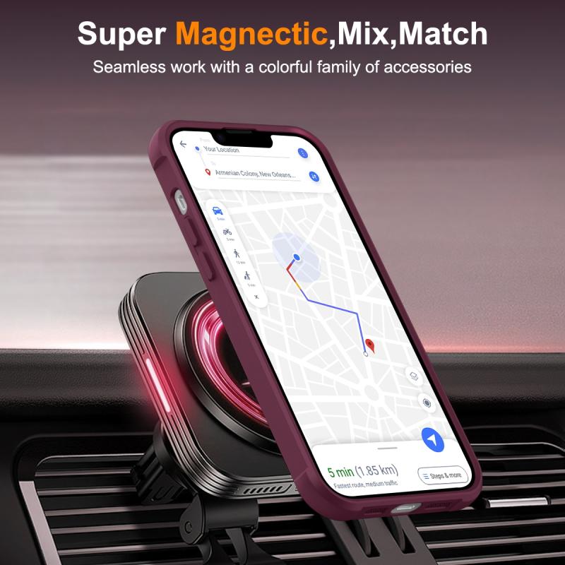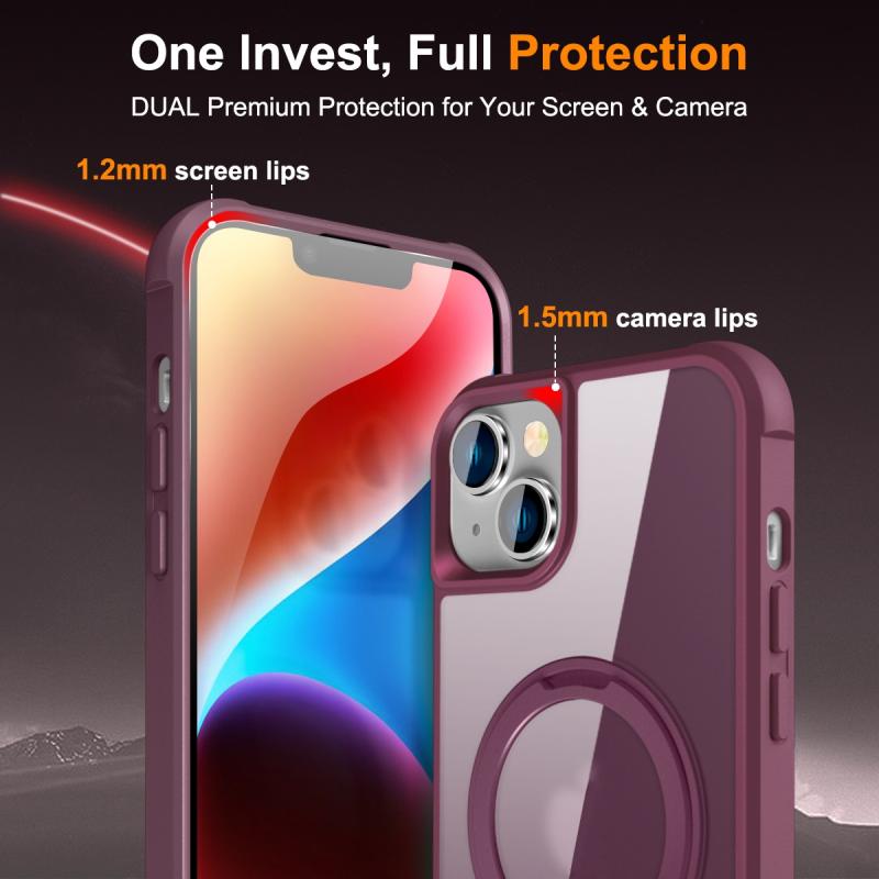 For iPhone 14 / 13 MagSafe Magnetic Rotating Holder Phone Case(Wine Red)