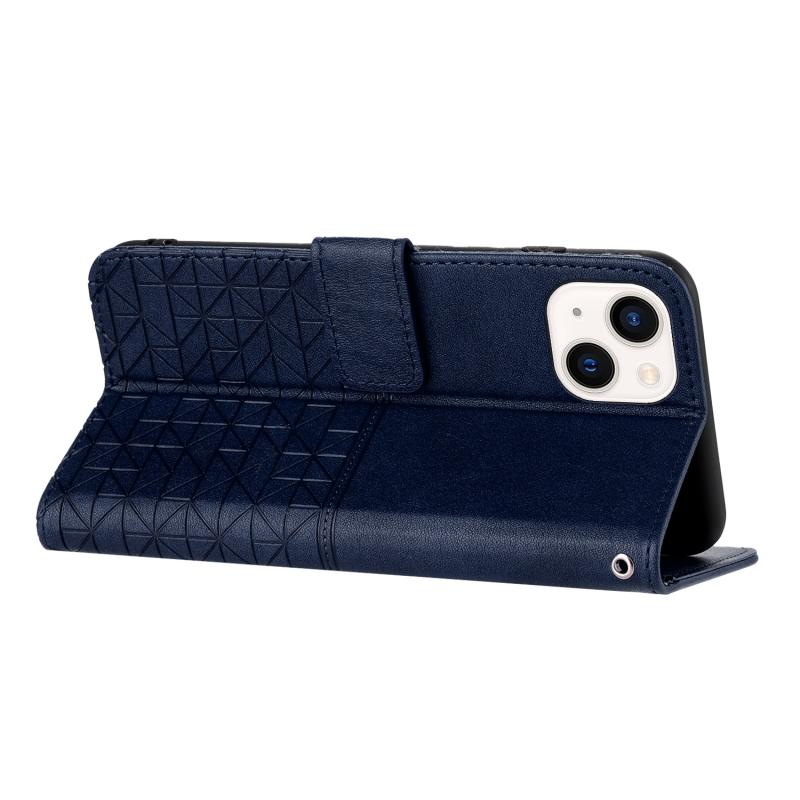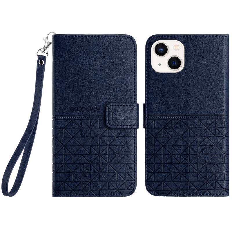 For iPhone 14 / 13 Rhombic Texture Leather Phone Case with Lanyard(Blue)