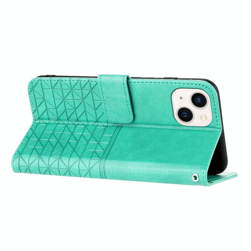 For iPhone 14 / 13 Rhombic Texture Leather Phone Case with Lanyard(Green)