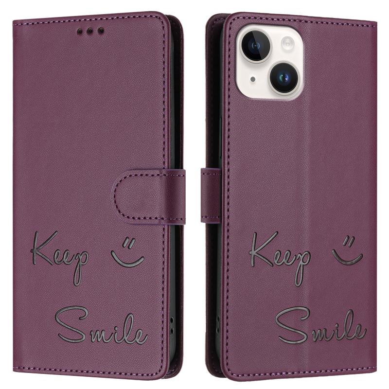For iPhone 14 / 13 Smile Embossing RFID Leather Phone Case(Violet)
