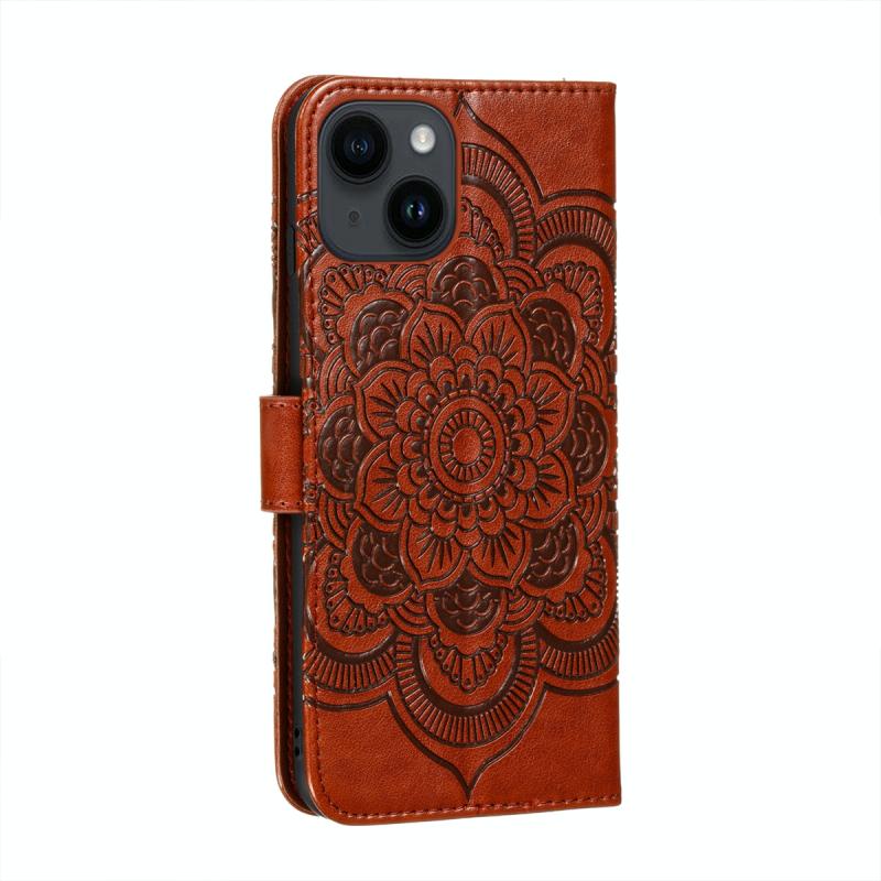 For iPhone 14 / 13 Sun Mandala Embossing Leather Phone Case(Brown)