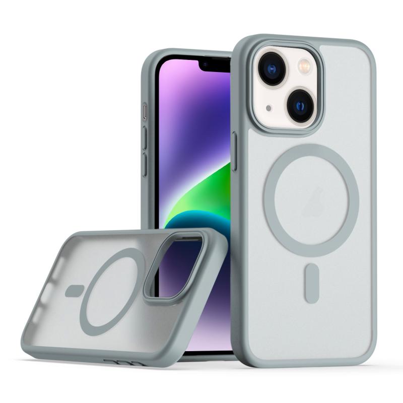 For iPhone 14 / 13 TPU Hybrid PC Inner Magnetic MagSafe Phone Case(Grey)