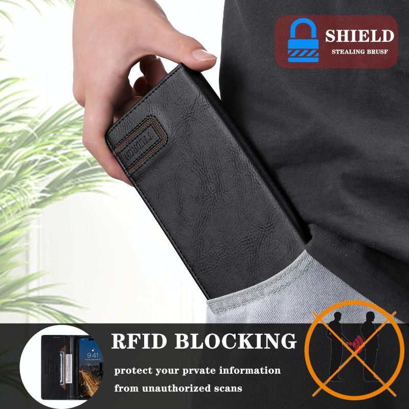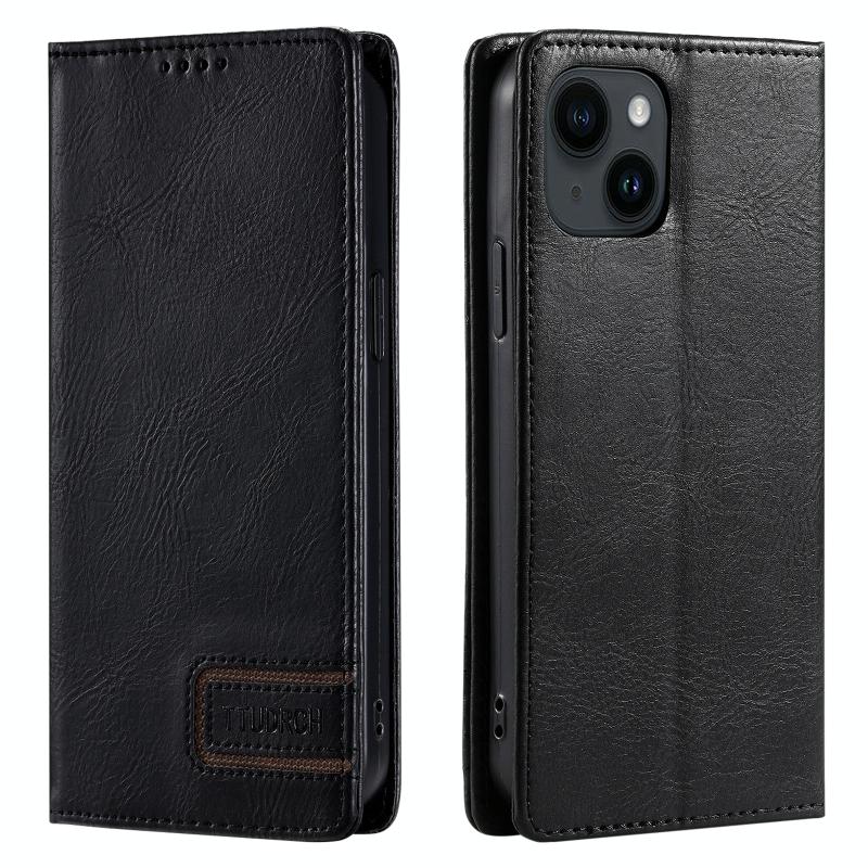 For iPhone 14 / 13 TTUDRCH RFID Retro Texture Magnetic Leather Phone Case(Black)