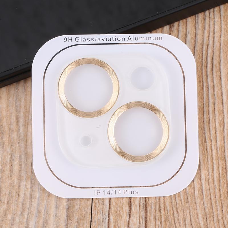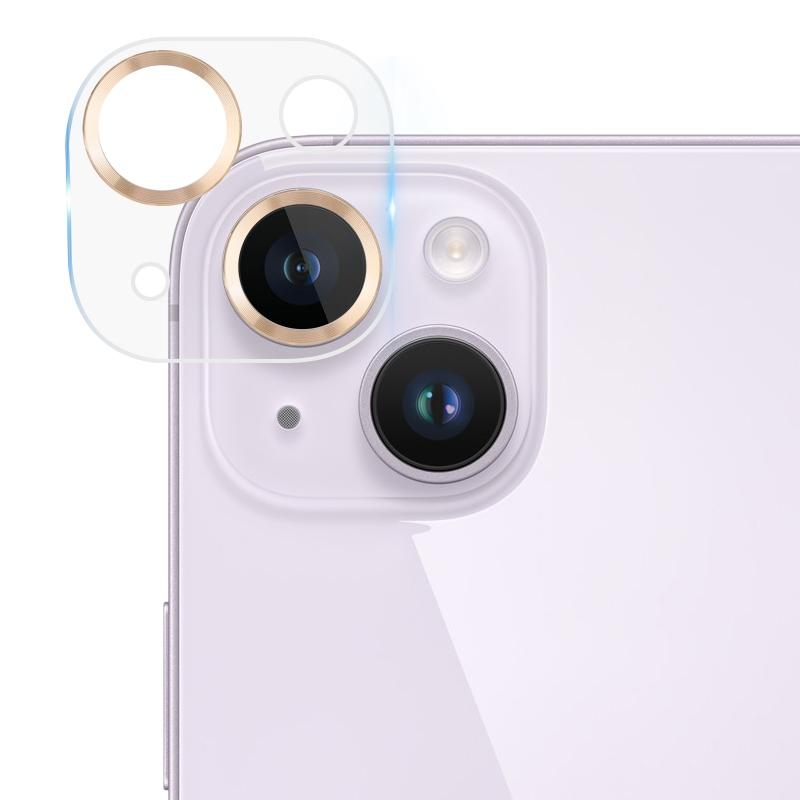 For iPhone 14 / 14 Plus Tempered Glass CD Texture Back Camera Film(Gold)