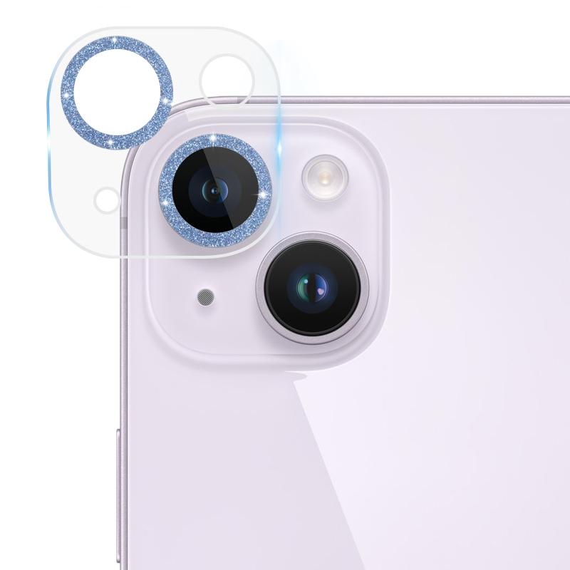 For iPhone 14 / 14 Plus Tempered Glass Glitter CD Texture Back Camera Film(Blue)