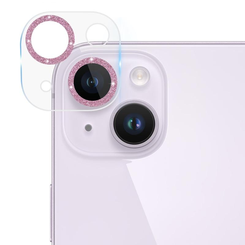 For iPhone 14 / 14 Plus Tempered Glass Glitter CD Texture Back Camera Film(Pink)