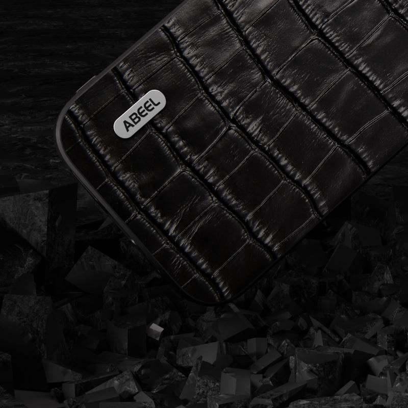 For iPhone 14 ABEEL Crocodile Texture Genuine Leather Phone Case(Black)