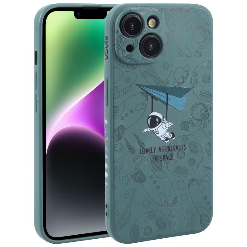 For iPhone 14 Astronaut Pattern Silicone Straight Edge Phone Case(Lovely Astronaut-Green)