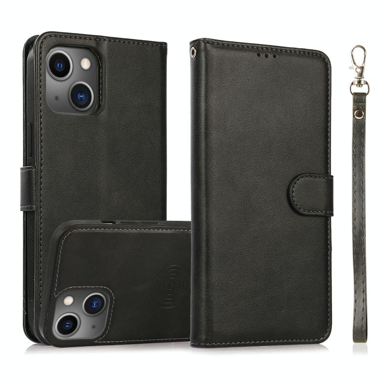 For iPhone 14 Calf Texture 2 in 1 Detachable Magnetic Back Cover Leather Case(Black)