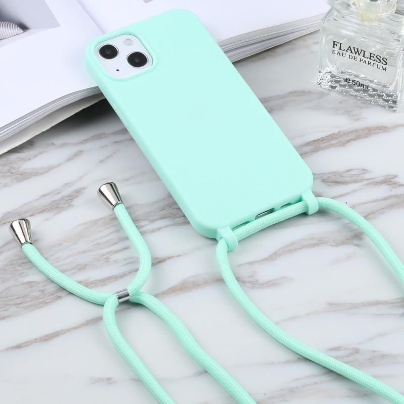 For iPhone 14 Candy Colors TPU Protective Phone Case with Lanyard (Mint Green)