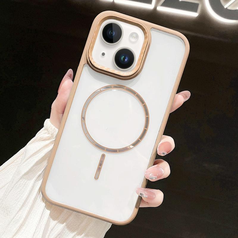 For iPhone 14 Chocolate Transparent MagSafe Shockproof Phone Case(Desert Gold)