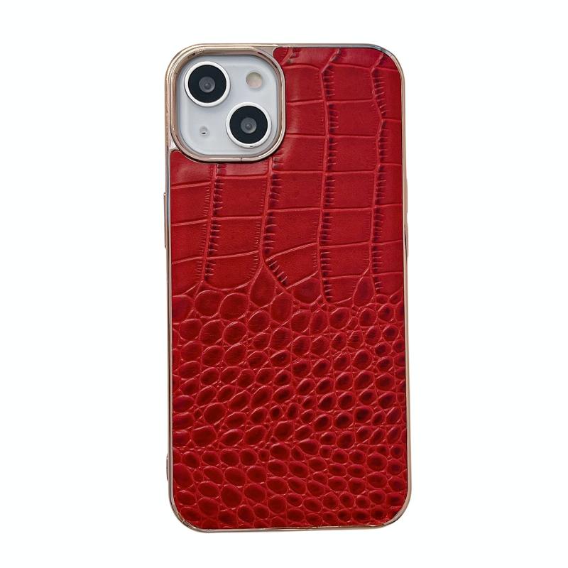 For iPhone 14 Crocodile Texture Genuine Leather Nano Electroplating Phone Case (Red)